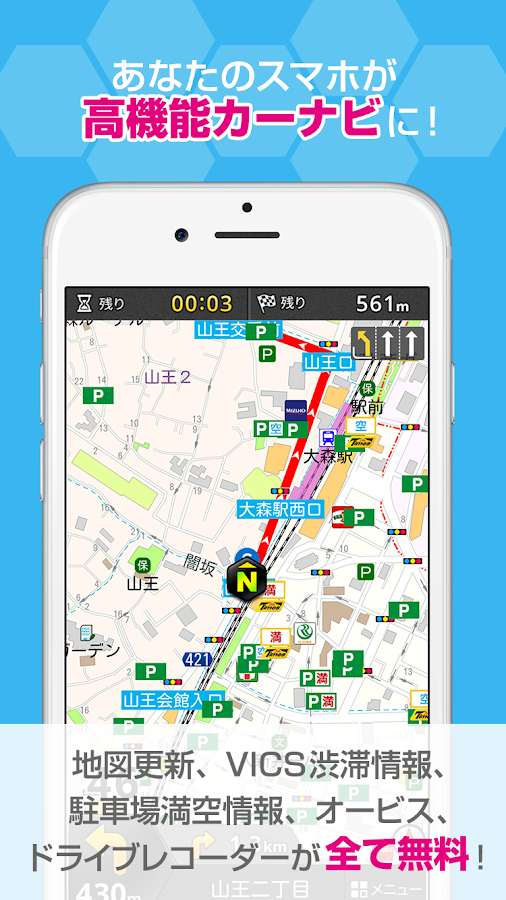 基本的には有料のNavitimeドライブサポーターを利用していますが、無料カーナビアプリのYahooカーナビもかなりおすすめです。